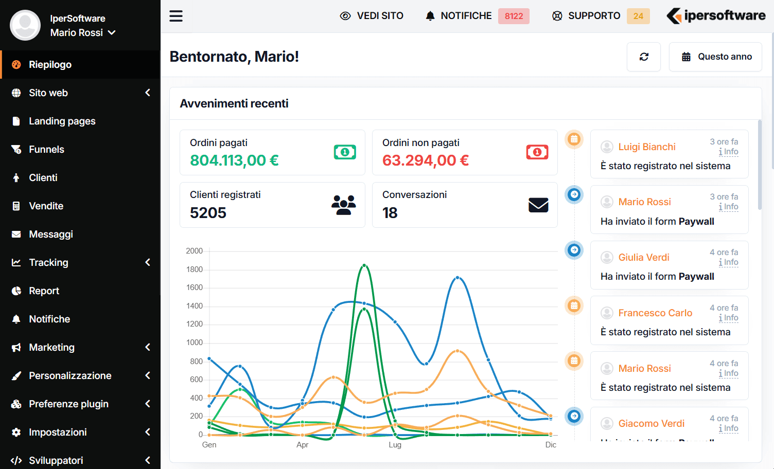 IperSoftware non è solo un CRM, è il motore di marketing completo progettato per le PMI. Ottieni tutte le funzionalità di cui hai bisogno, potenziate dall'Intelligenza Artificiale, per massimizzare il ROI e automatizzare la tua strategia digitale.